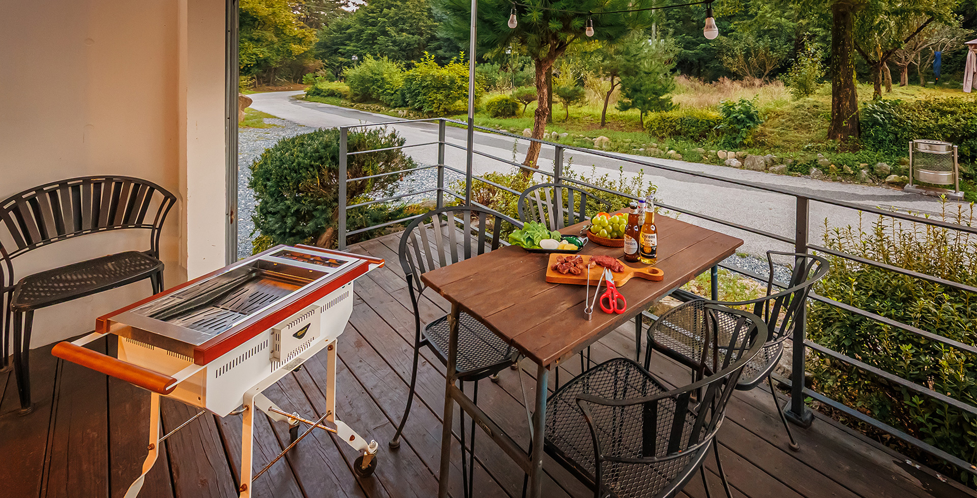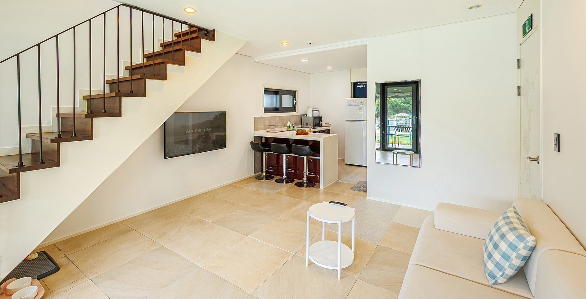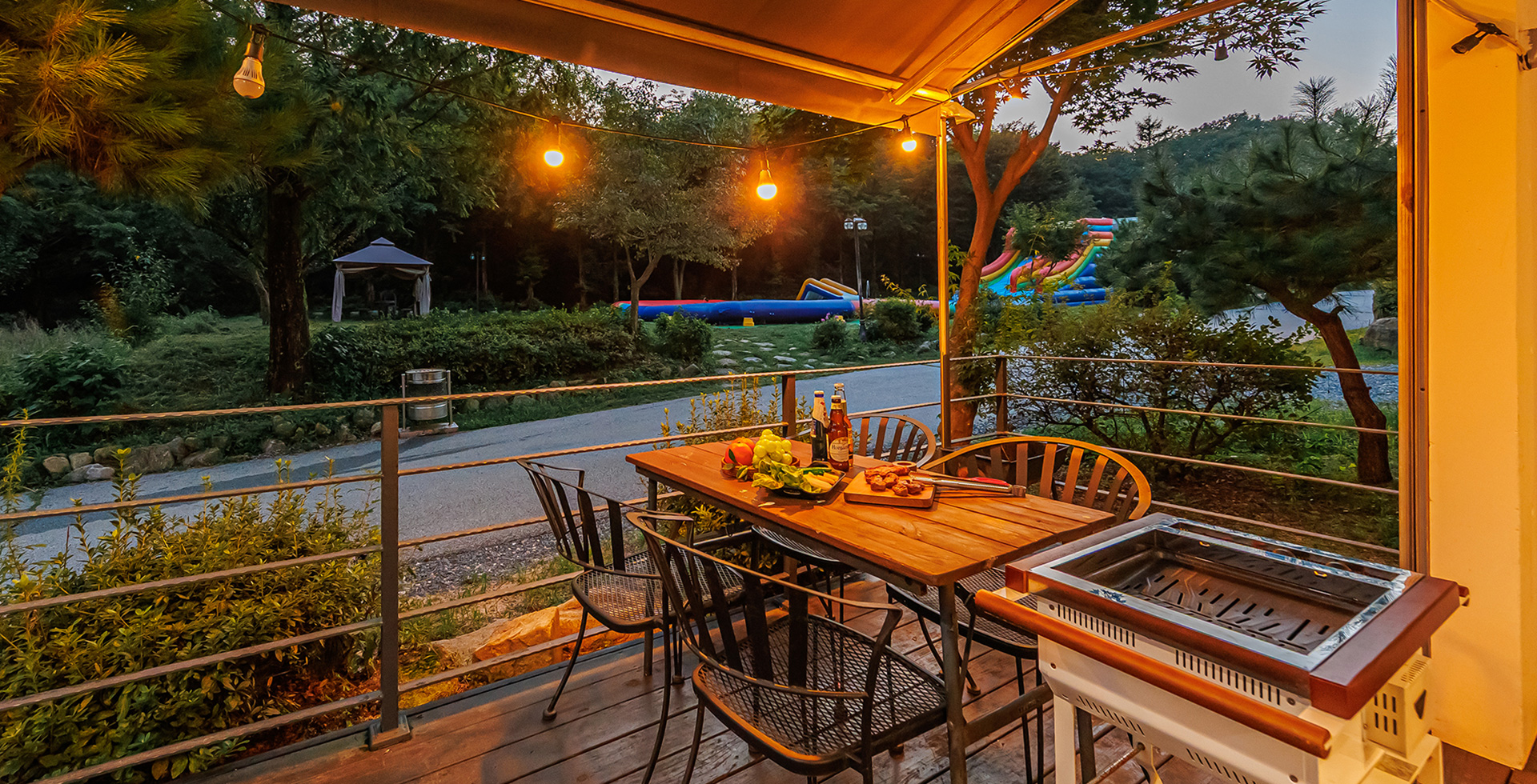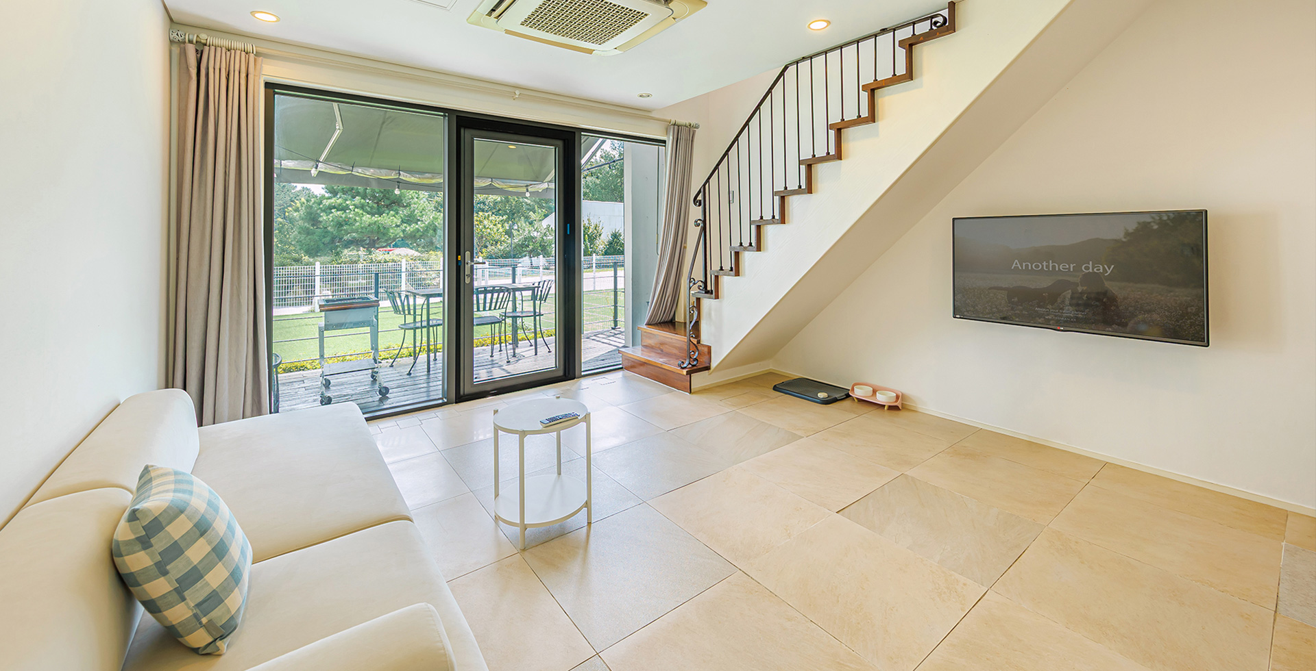 - 복층형/침대A(2층) + 거실 겸 주방 + 화장실1 + 개별수영장 + 테라스바베큐 + 복층