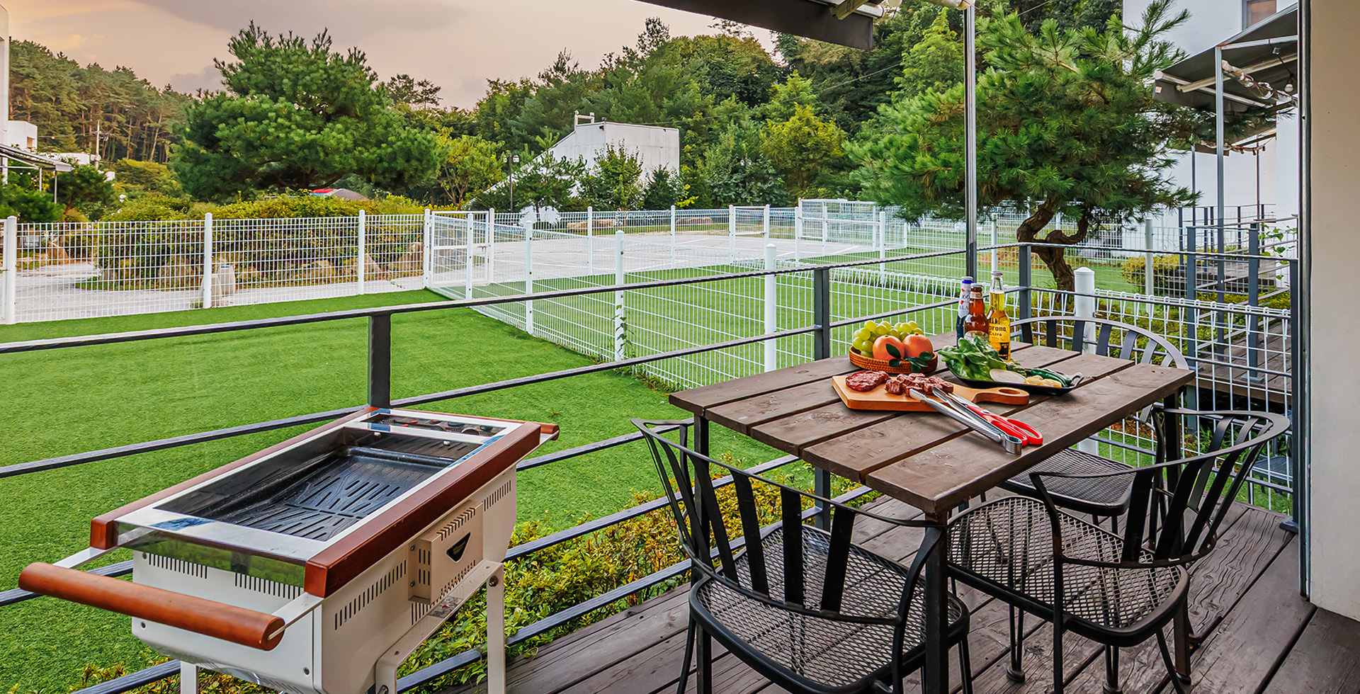 - 복층형/침대A(2층) + 거실 겸 주방 + 화장실1 + 개별스파 + 테라스바베큐 + 개별펜스