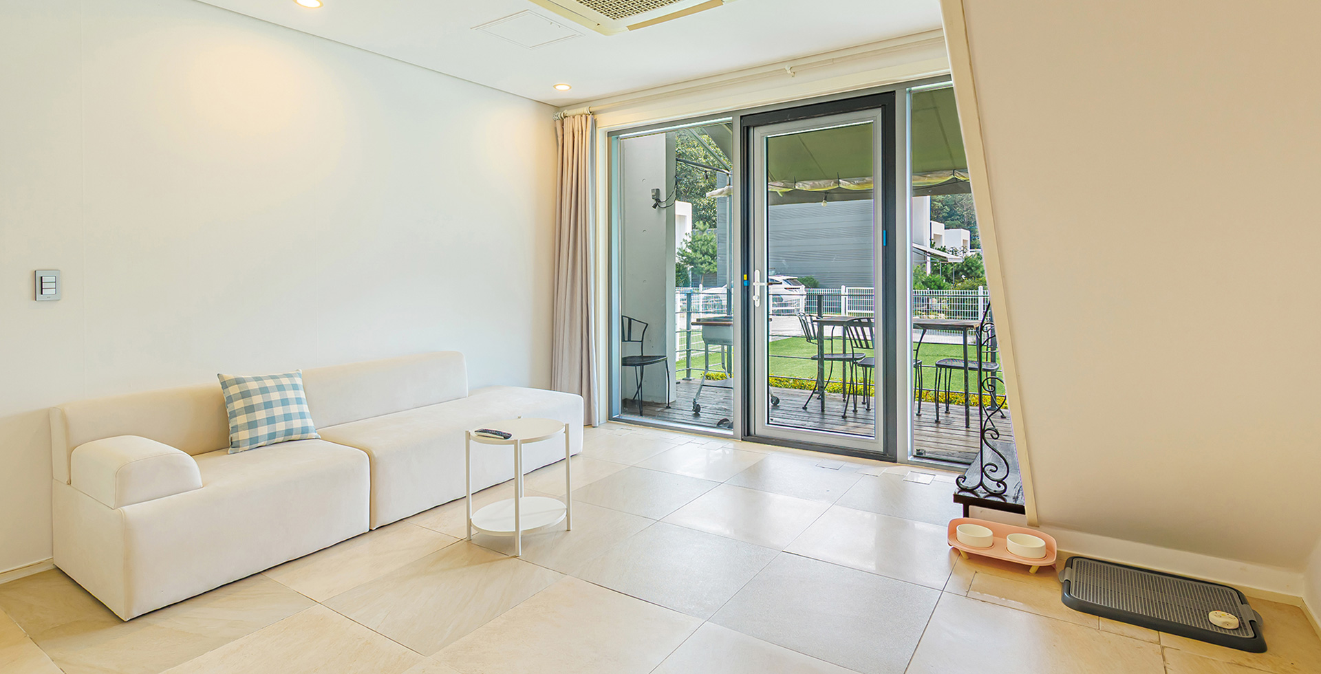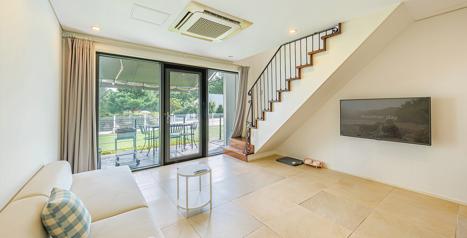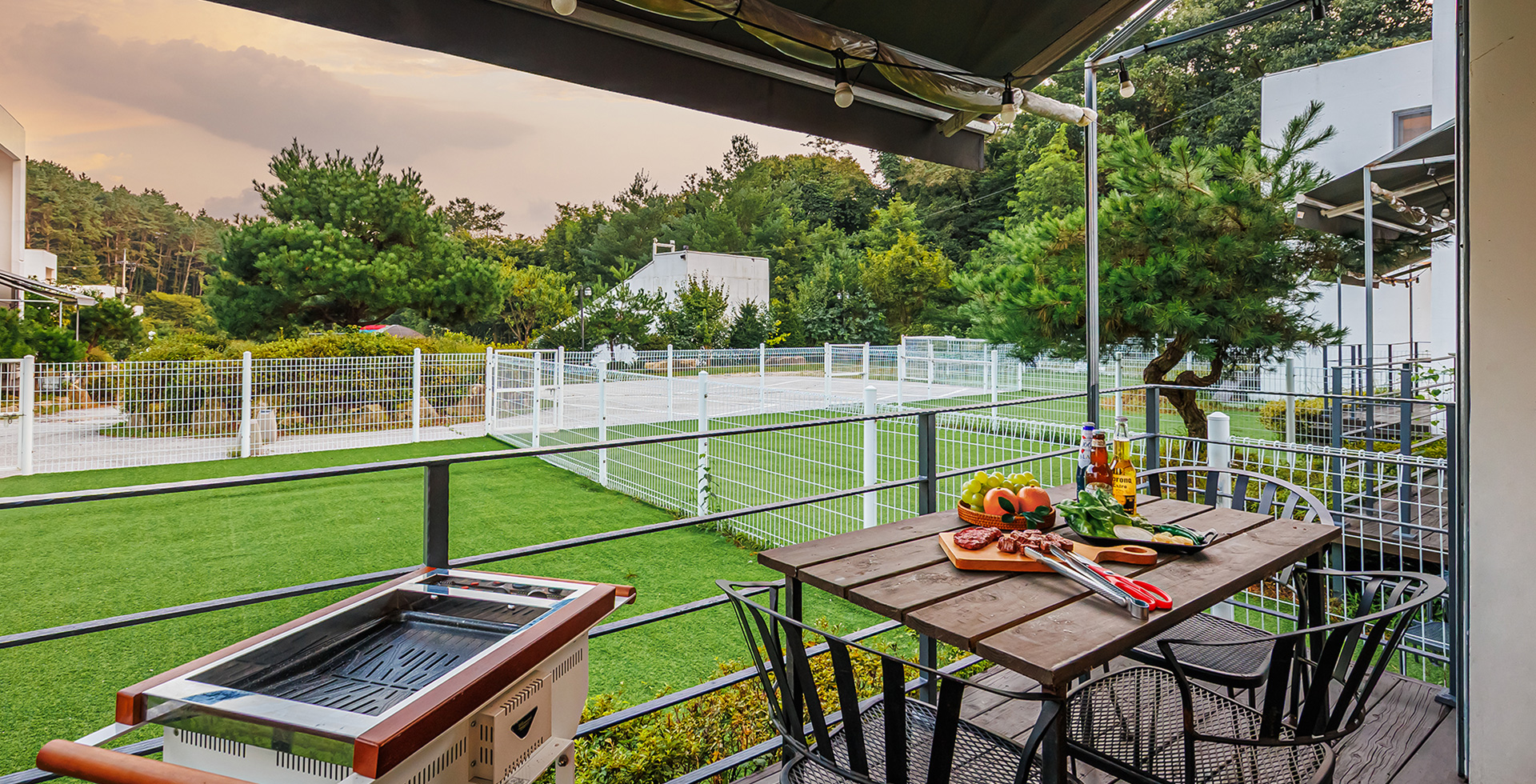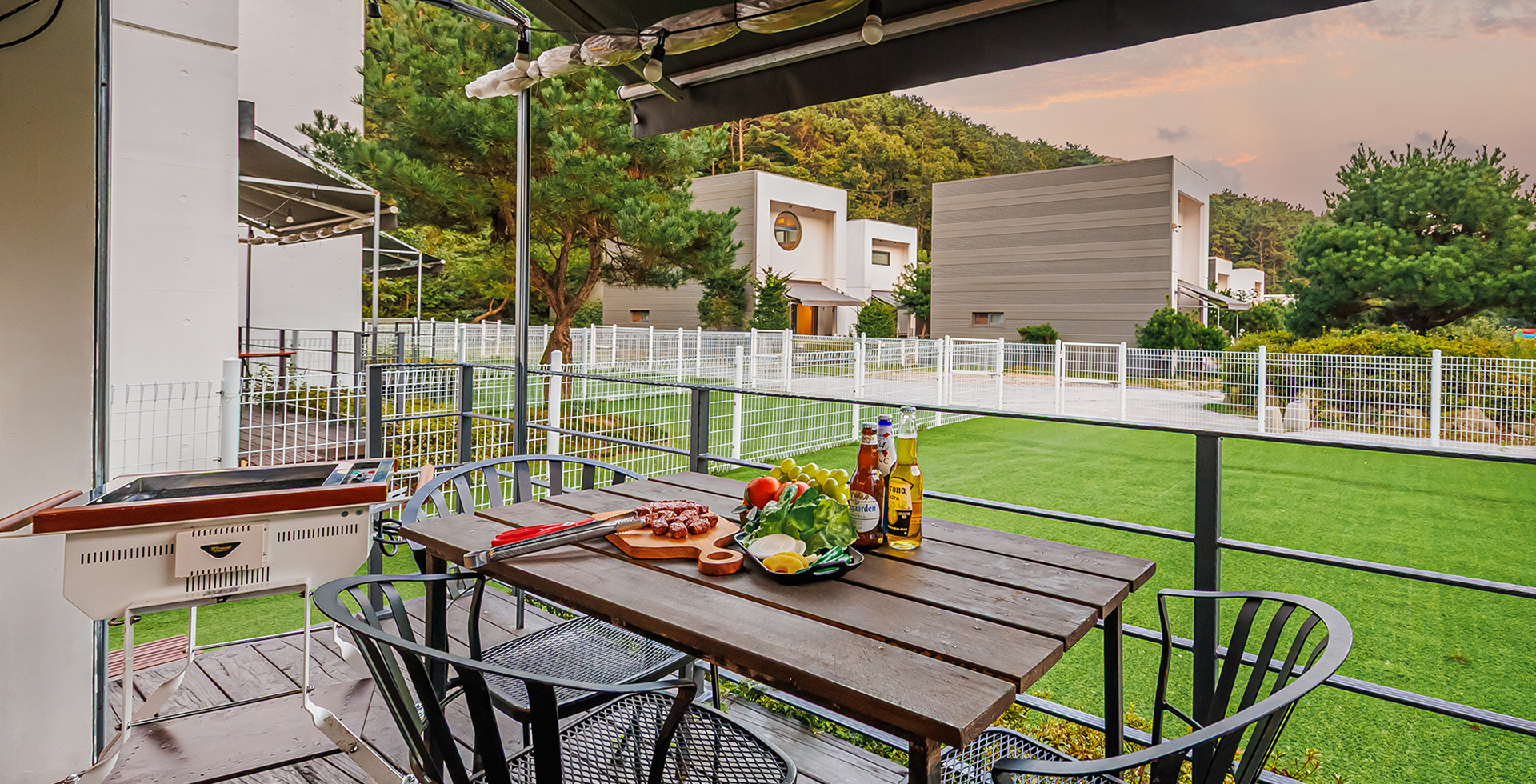 - 복층형/침대A(2층) + 거실 겸 주방 + 화장실1 + 개별스파 + 테라스바베큐 + 개별펜스