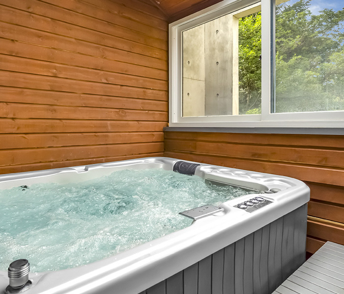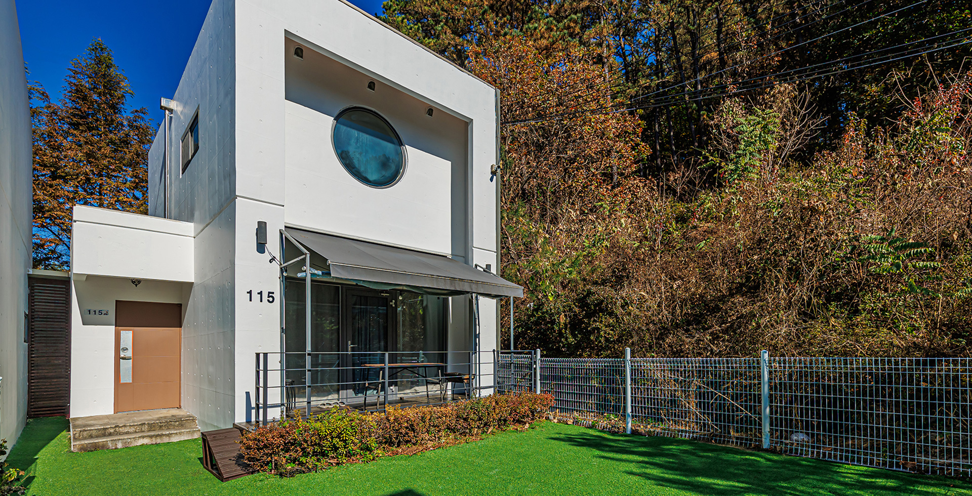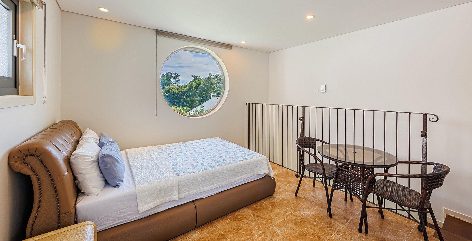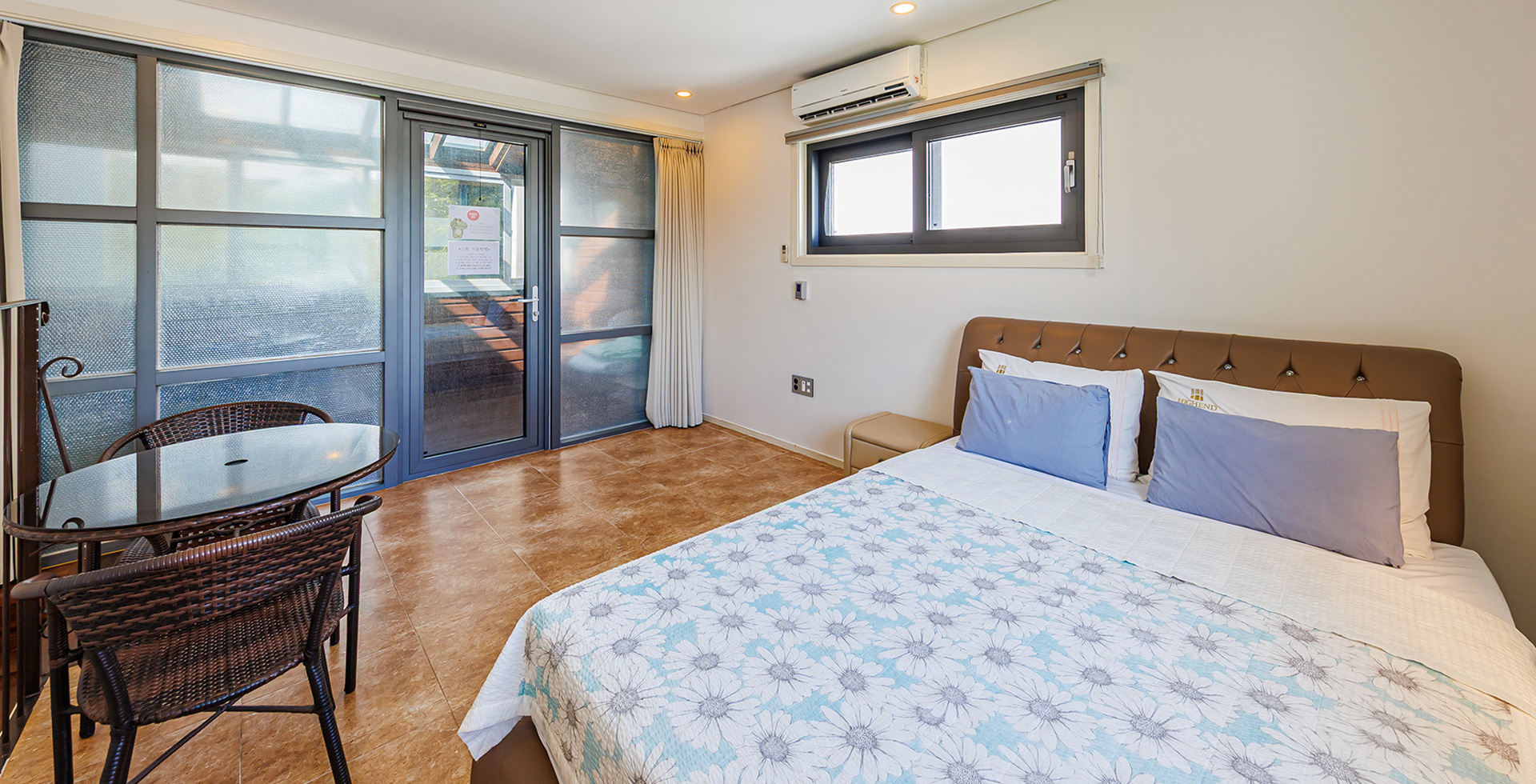 - 복층형/침대A(2층) + 거실 겸 주방 + 화장실1 + 개별스파 + 테라스바베큐 + 개별펜스